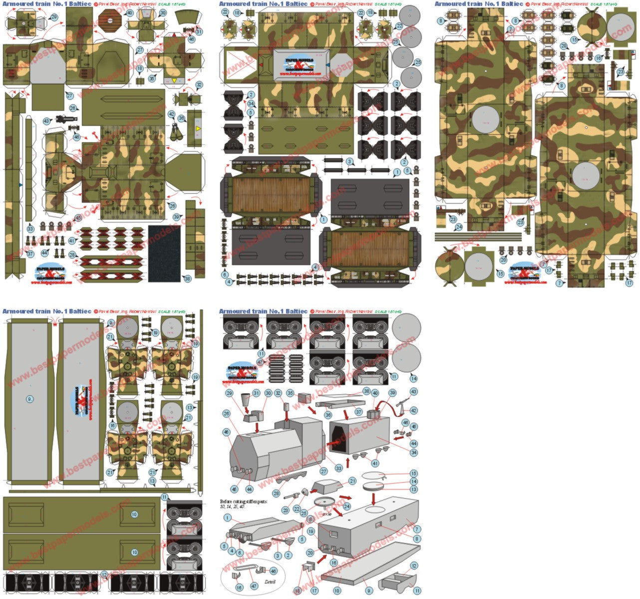 Paper model of the Soviet armored train Baltěc from the 72nd Armored Train Division. It was used in 1942 near Leningrad.