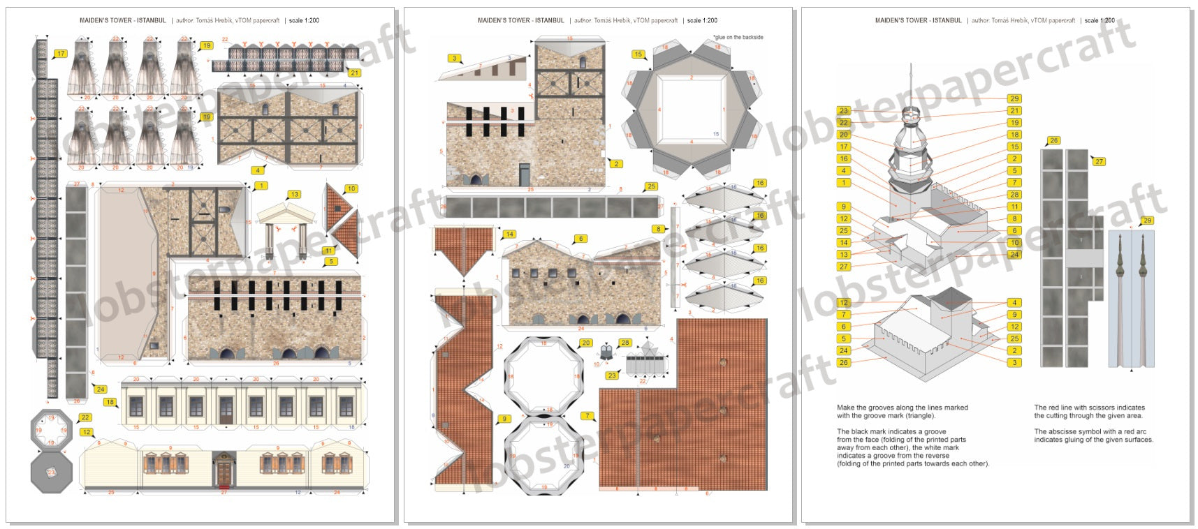 Paper model of tower on a small islet in Istanbul, Turkey. In 1998, the tower was reconstructed for the filming of the Agent 007 film, The World Is Not Enough.