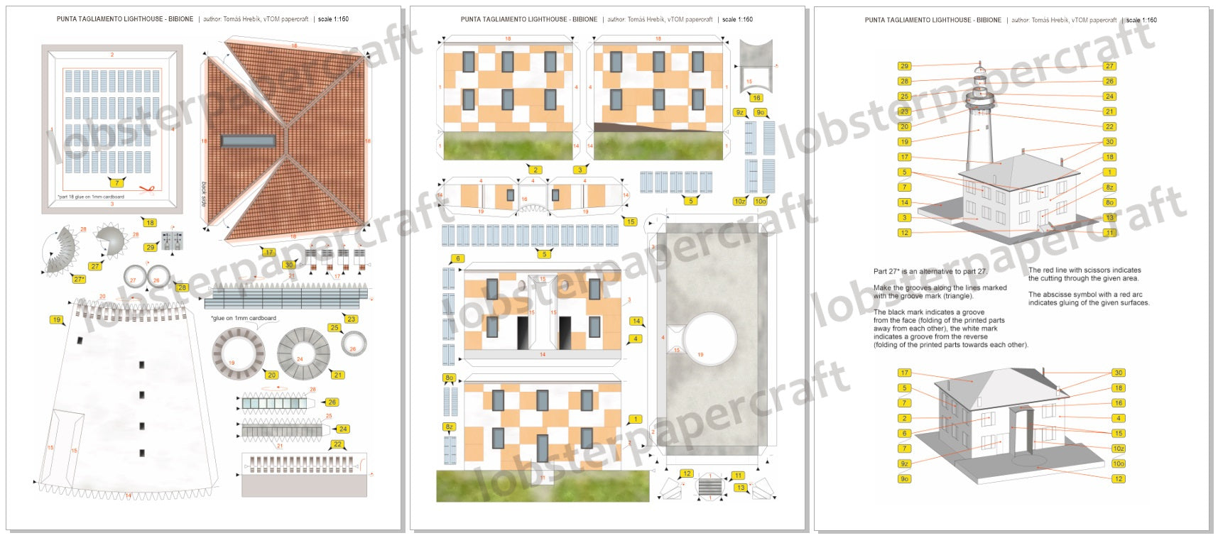 Paper model of lighthouse in Bibione, San Michele al Tagliamento, Veneto, Italy. The lighthouse was built in 1913, destroyed during WWI and shortly after that rebuilt.