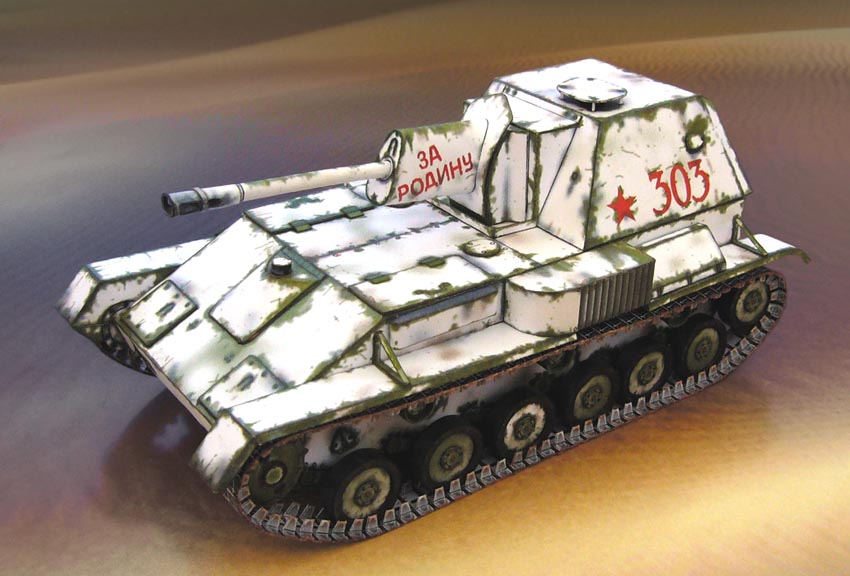 Paper model of the Soviet self-propelled gun SU-76. SU-76 was a Soviet self-propelled gun from the period of World War II designed mainly to support infantry. It was built on a modified chassis of a T-70 light tank.